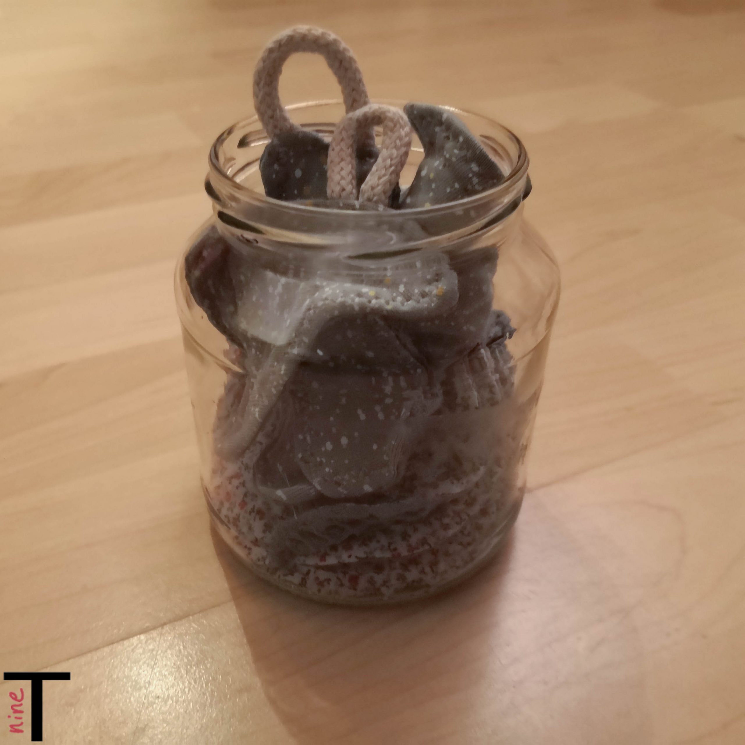 So kann man die Abschminkpads nun auch gut mitnehmen, in dem ich sie dann auffädeln kann. Mal schauen, ob sich das als praktikabel erweist.